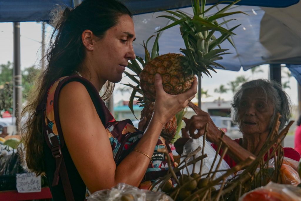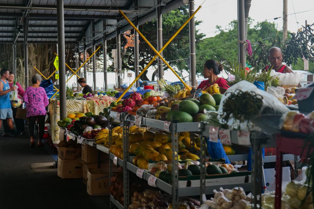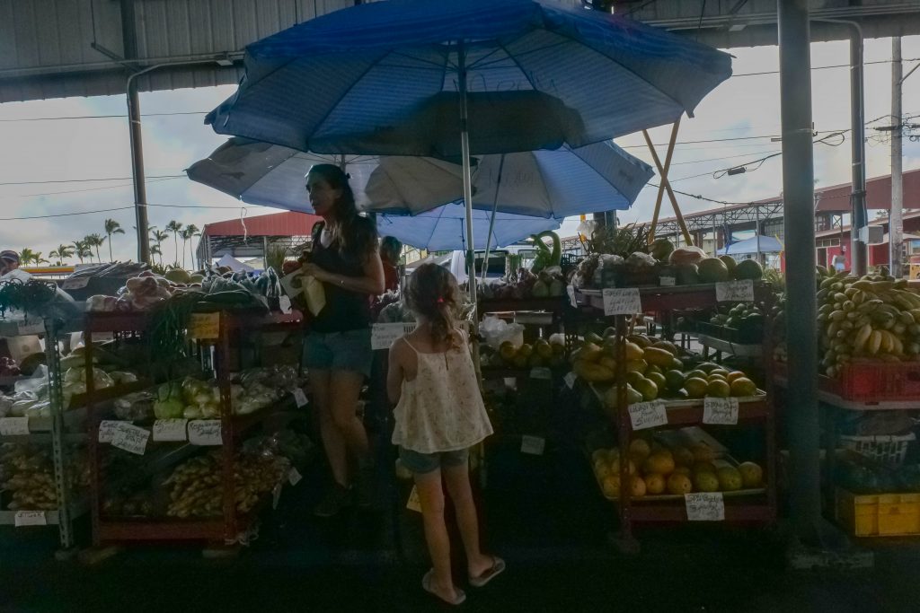 Avant de finir cette première journée bien remplie, nous sommes passés par Hilo, pour voir le marché local, acheter quelques fruits et légumes et pour se promener sur le bord de mer.