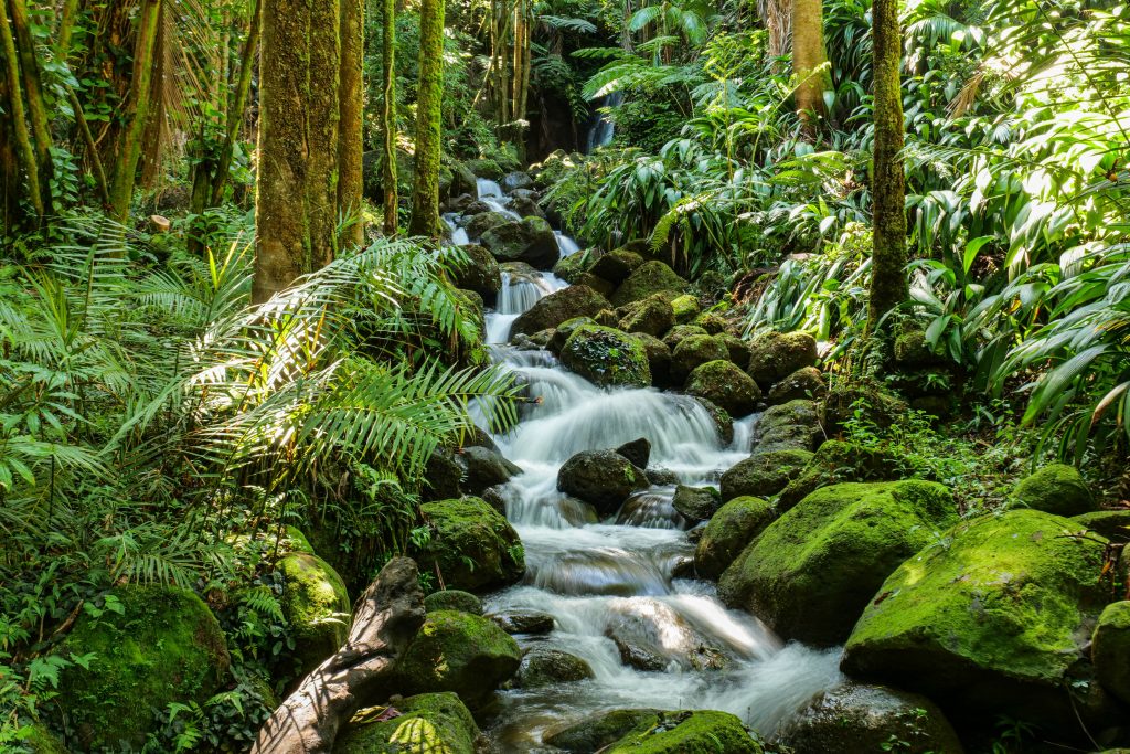 Sur le chemin vers Hilo, nous nous sommes arrêtés à la belle cascade de Rainbow Falls.