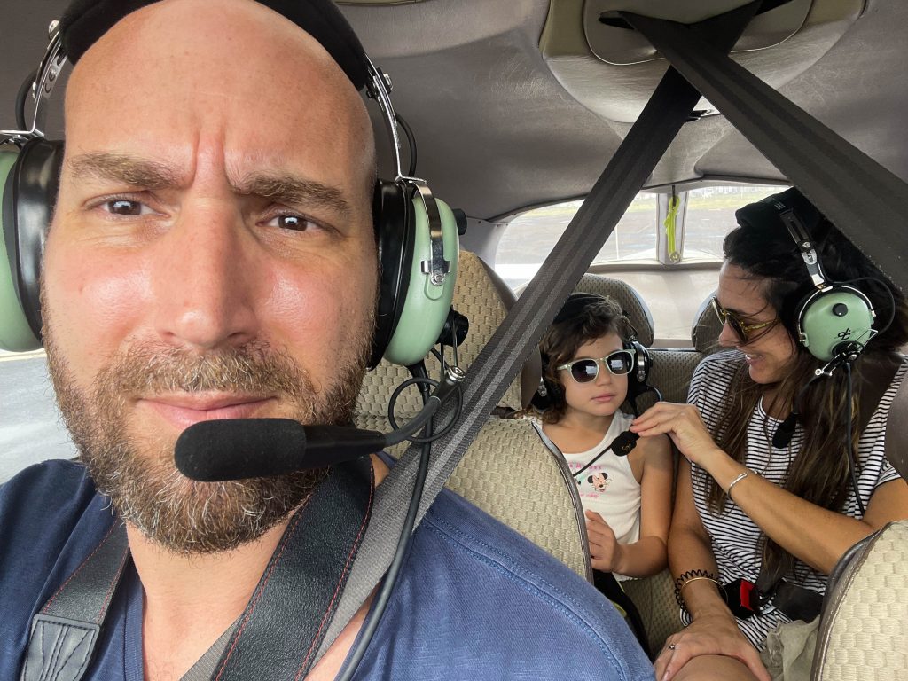En avion car c’est beaucoup moins cher (mais vraiment beaucoup !) et nous ne sommes que nous 3 dans l’avion, avec le pilote bien sûr..!