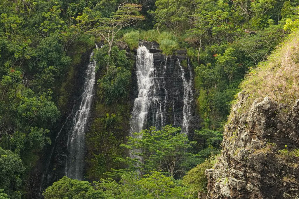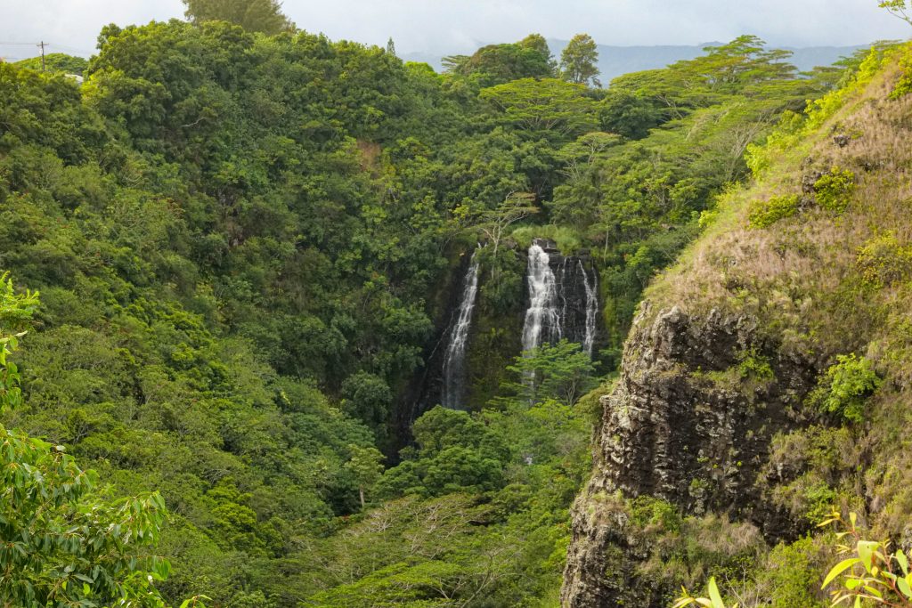 Sur le chemin, nous nous sommes arrêtés sur la côte est, et plus précisément à la Wailua River et les Opaeka’a Falls. Arrêt photos sur un point de vue. Classique.