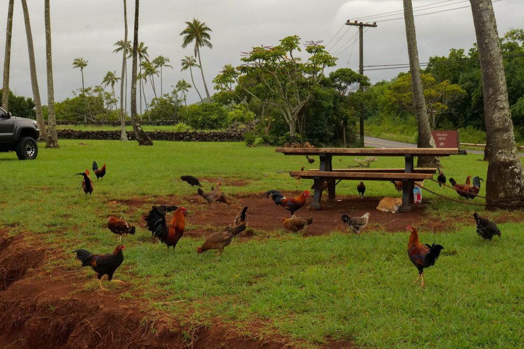 Nous logions sur la côte Nord, à Princeville : Ville de résidences et d’appartements, avec golf et lotissements à l’américaine. Mais finalement, l’ambiance est calme, sereine, au milieu de la végétation, et surtout proche de la ville plus authentique de Hanalei et de la Napali Coast au Nord Ouest. Bref un joli point de chute.