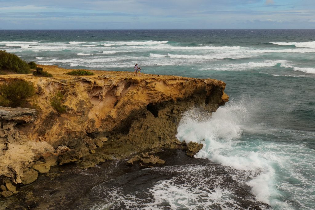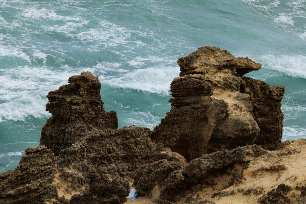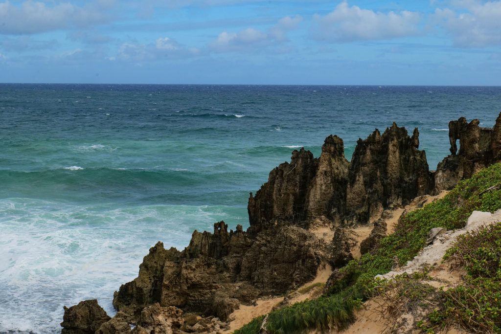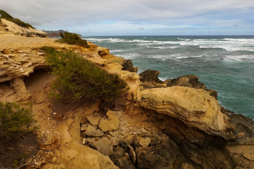 Comme vous le voyez sur les photos, il n’y a pas de lagon ici. Les vagues se cassent sur les falaises et les sculptent.