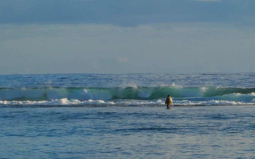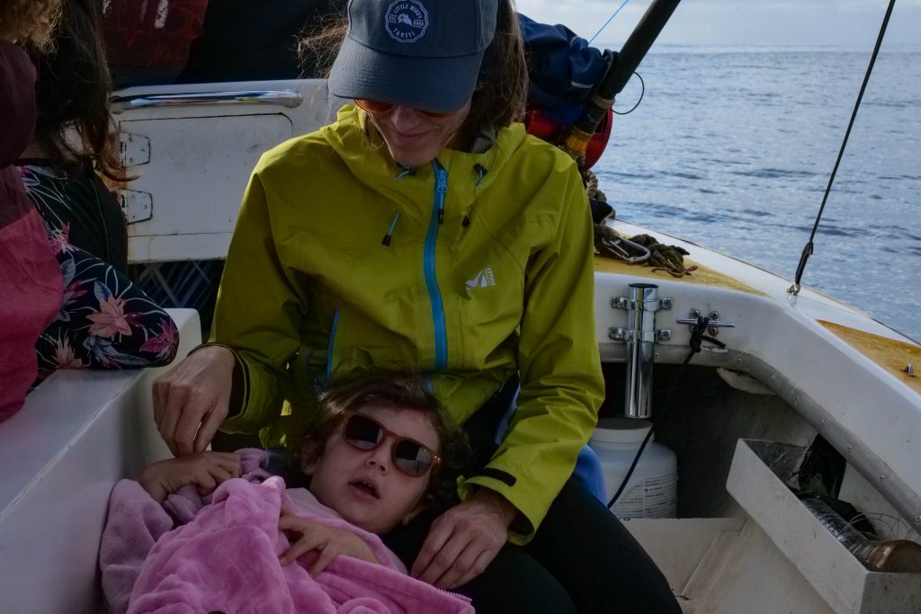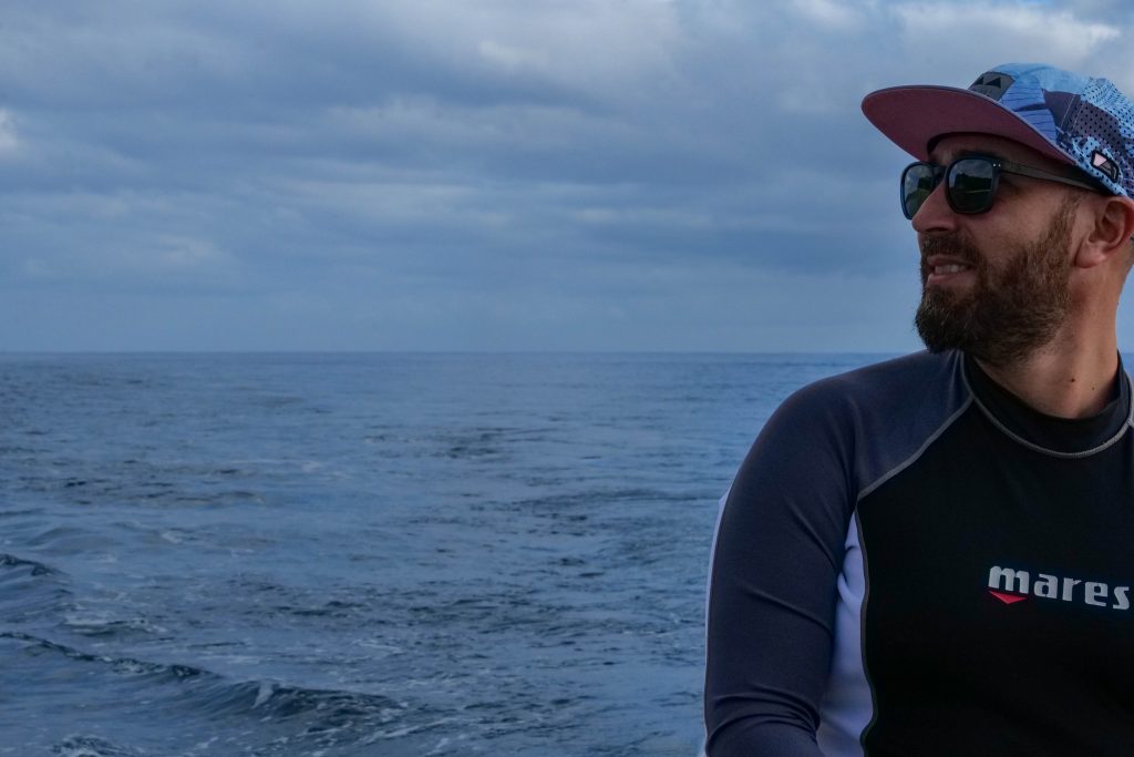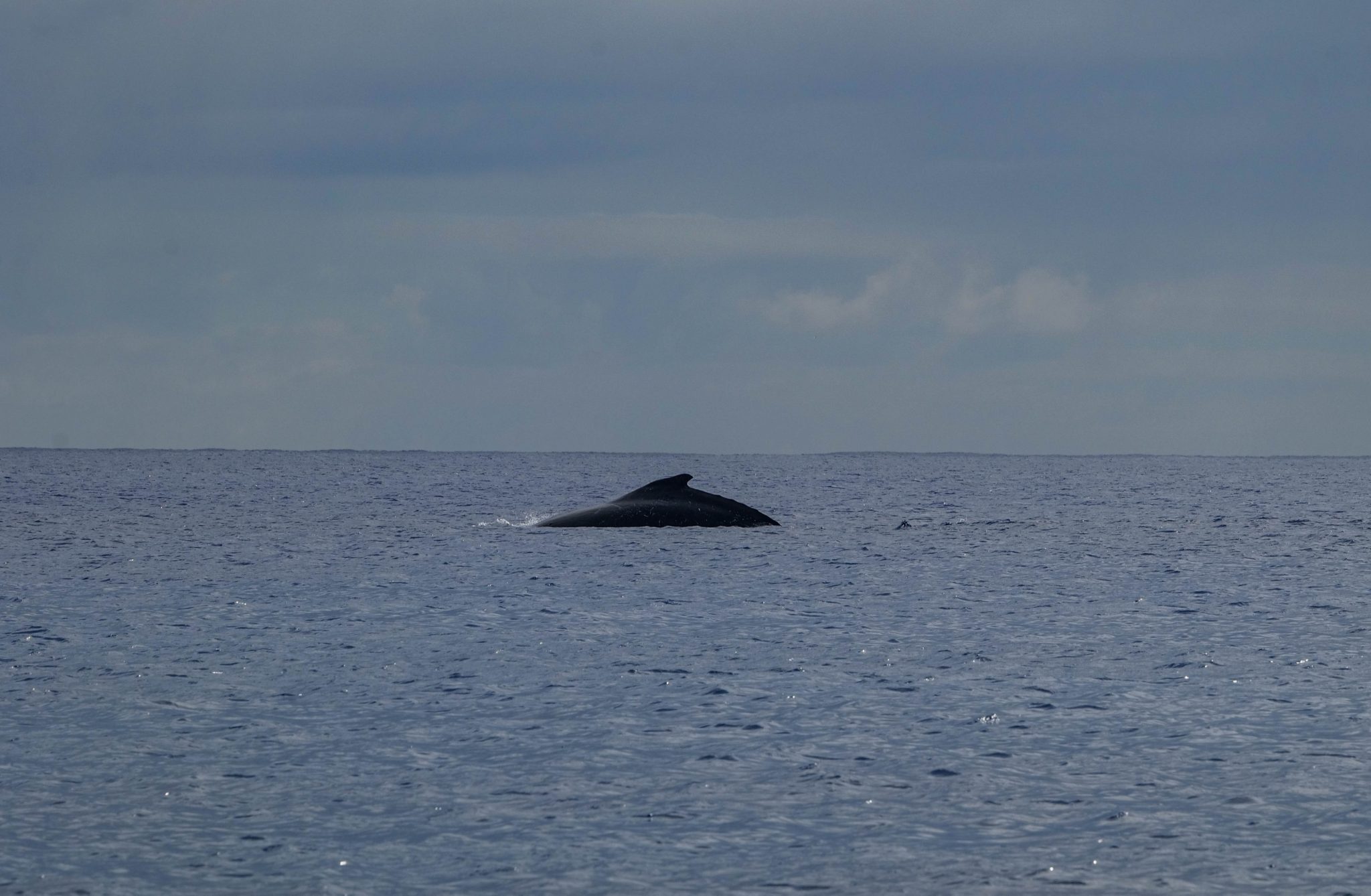 Le but, ensuite, est de scruter l’horizon pour essayer de visualiser les jets des baleines quand elles viennent respirer à la surface. Cela permet de les localiser, de s’en approcher prudemment, et si les conditions le permettent, de se mettre dans l’eau avec elle(s)