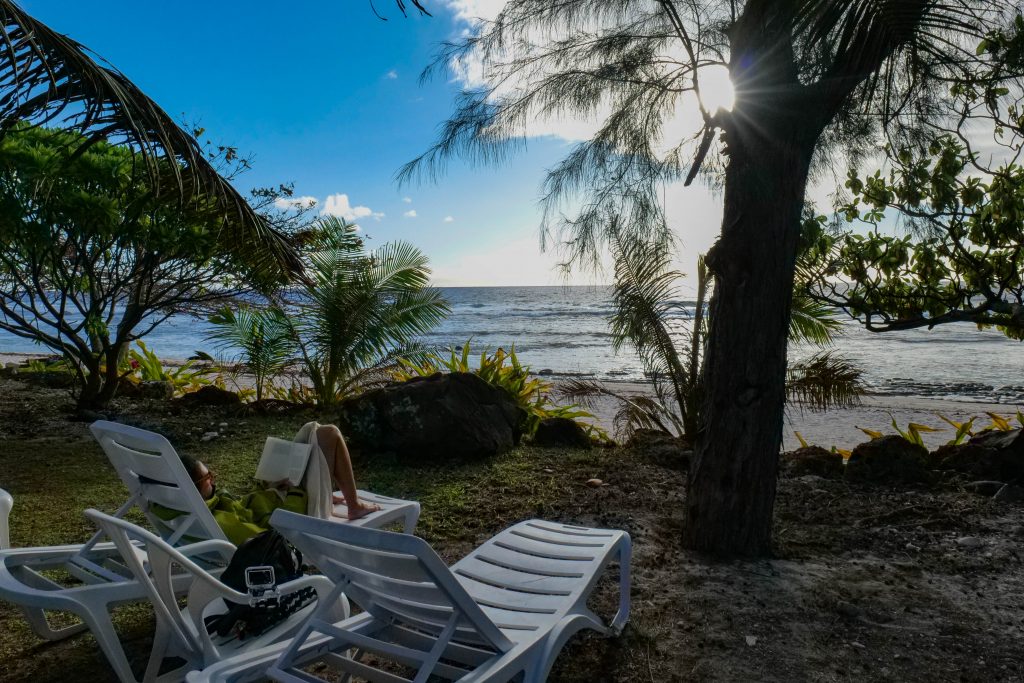 Les Australes sont toujours l’archipel le plus au sud de la Polynésie, ça n’a pas bougé. Il y fait donc, actuellement en août, bien plus frais que dans les autres archipels : Océan à 20°, températures extérieures entre 18° et 25°.